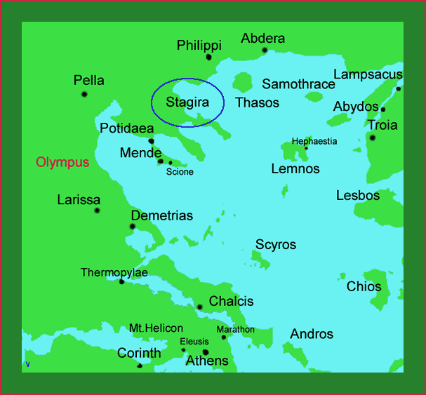 Aristotele non era un ateniese, ma un greco di frontiera, macedone di adozione. Non era perciò un nazionalista: anzi, in certo senso, si sentiva cosmopolita, cittadino del mondo di allora, e per origine e formazione legato più che altro ai macedoni. Lo prova, ad esempio la sua amicizia con Antipatro, il viceré che Alessandro lasciò a governare la Grecia per i dodici anni successivi alla conquista. Probabilmente, Aristotele non vedeva alcuna ragione per opporsi a un occupante assai pin liberale di quello spartano e perfino ben disposto verso la cultura greca, al punto da consentire che i campioni oratori dei circoli anti-macedoni vincessero in una sfida pubblica i colleghi del partito macedone, come Demostene acclamato trionfatore di Eschine. Per di più, Alessandro proteggeva e finanziava da lontano l'opera didattica e scientifica di Aristotele. D'altronde, solo una minoranza della borghesia greca di allora, compresa quella intellettuale, era dalla parte dei nazionalisti come Demostene. La maggior parte non capiva perché tentare di sottrarsi a un tutore non oppressivo che allargava i mercati e che alimentava scambi commerciali e culturali, incoraggiando iniziative di ogni tipo.